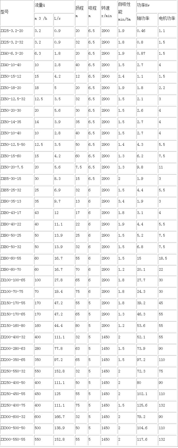 ②工業(yè)自吸泵適用于清水、海水及帶有酸、堿度的化工介質(zhì)液體和帶有一般糊狀的漿料介質(zhì)粘度≤100厘珀、含固量可達(dá)30%以下。