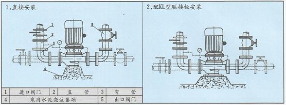6、ISG離心泵分硬性聯(lián)接安裝和柔懷聯(lián)接安裝兩種(見(jiàn)聯(lián)接方式)。